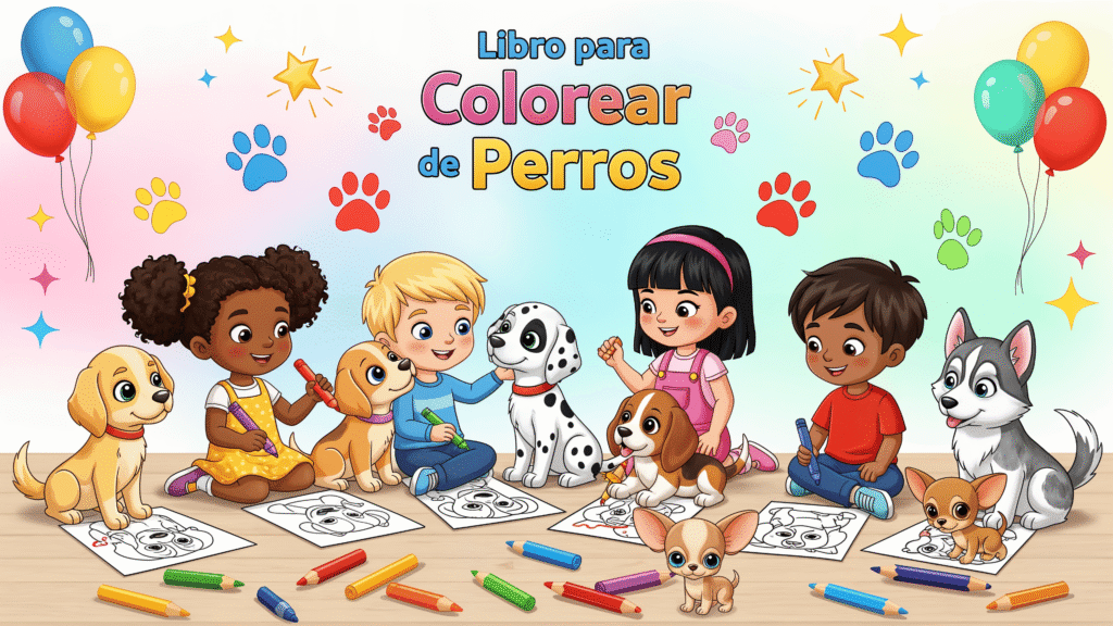 PDF con adorables ilustraciones para colorear perros para niños y personajes de Perrukos. Cada página está diseñada en A4, con espacio suficiente para que los niños desarrollen motricidad, concentración y creatividad mientras se divierten. Ideal para actividades infantiles imprimibles en casa o en la escuela.